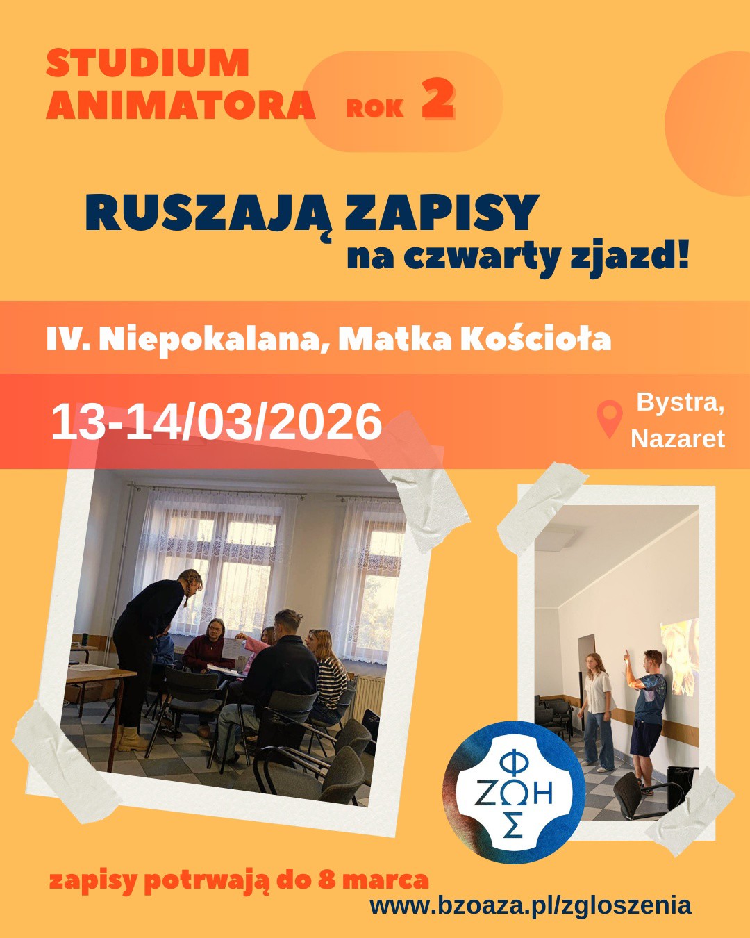 Studium Animatora już na horyzoncie! 😁 Wystartowały zapisy na 4 już zjazd II roku. 😇 Będzie on poświęcony Niepokalanej, Matce Kościoła. Spotkamy się w "Nazarecie", w dniach 13-14 marca.