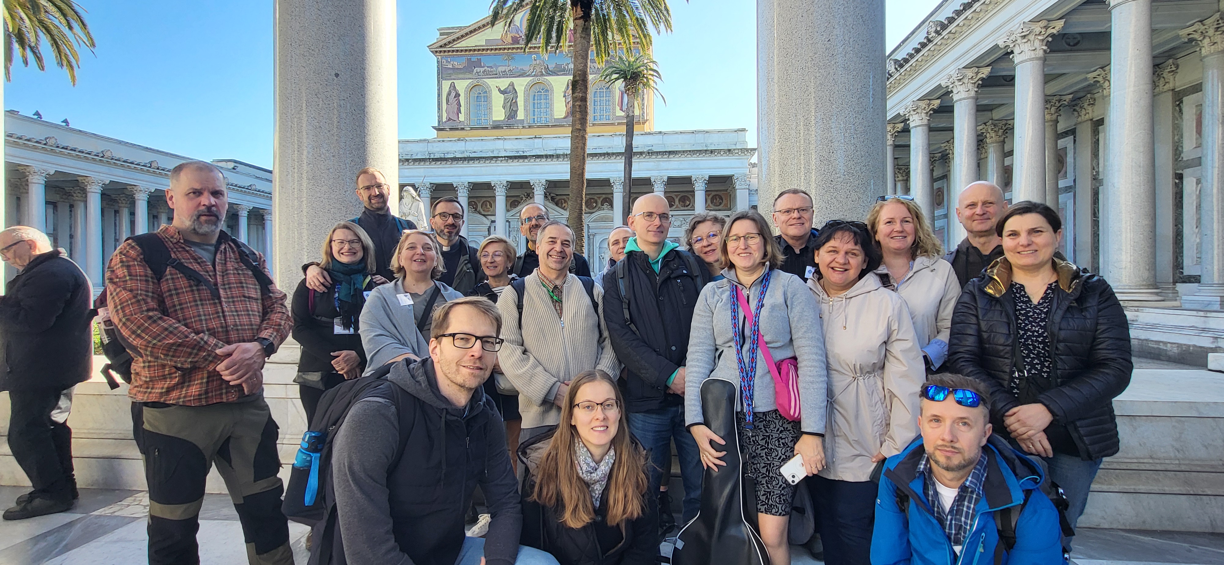 Pierwszym, bardzo ważnym było spotkanie z Piotrem naszych czasów, papieżem Leonem XIV na audiencji, na Placu Świętego Piotra. Ojciec Święty pozdrawiając nas, zgromadzonych na Placu życzył, by Wielki Post był czasem spotkania z Chrystusem w sakramencie pokuty i uczynkach miłosierdzia. Pięknym było spotkanie z ks. kardynałem Krajewskim, który ujął nas swoją prostotą. Człowiek, który nie buduje wokół siebie barier, ani nie robi dystansu. Jest bezpośredni, ciepły i kochający ludzi, a przede wszystkim kochający Jezusa i żyjący Ewangelią. Poznaliśmy wspólnotę Nowe Horyzonty, Opus Dei. Spotkaliśmy się z Ekip Notre Dame, ale też z Domowym Kościołem, mogliśmy wyraźniej dostrzec różnice między tymi dwoma ruchami. Było tych spotkań wiele. Każda wspólnota inna, z innym charyzmatem, innym zadaniem do wykonania. Wszyscy, z którymi się spotykaliśmy, promieniowali radością. Każdy z nich witał nas z uśmiechem i błyskiem w oku, choć czasem to spotkanie było wieczorem, po całym dniu pracy. Oni przychodzili przepełnieni miłością i radością Dziecka Bożego. I właśnie tym się dzielili.