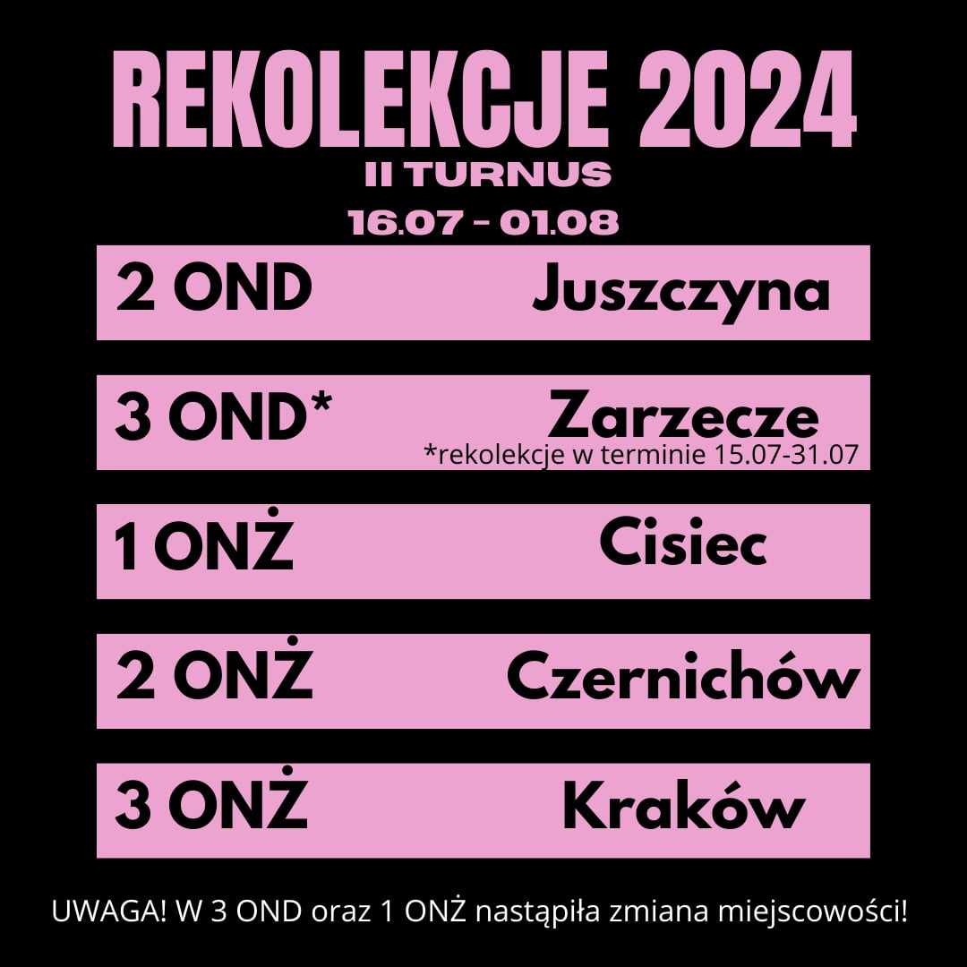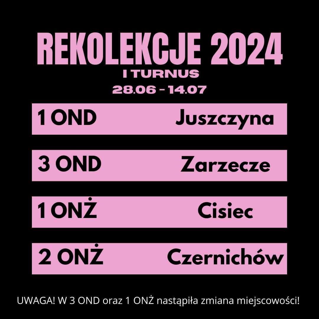 Zmiany dotyczą rekolekcji odbywających się w Ciścu oraz Zarzeczu (w obu turnusach)