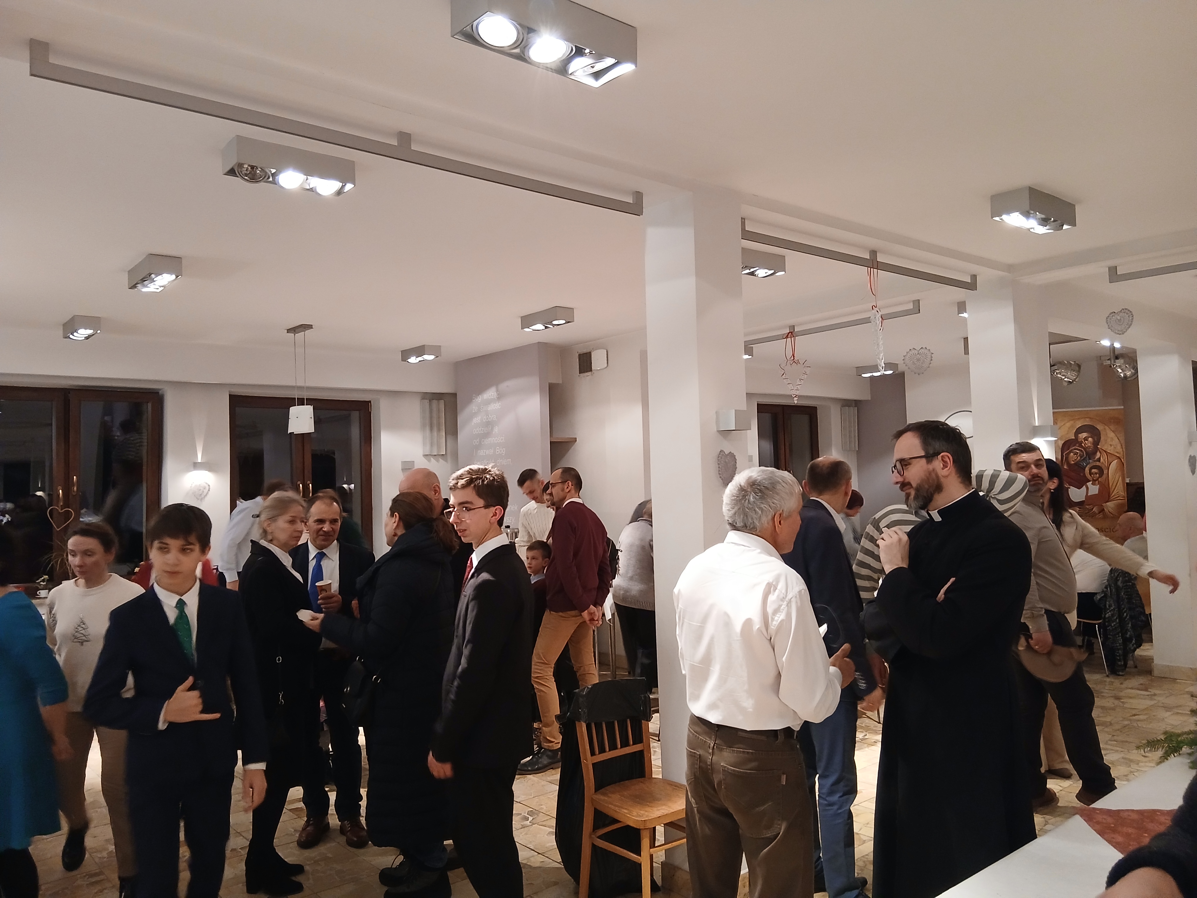 Po Mszy Świętej blisko 400 uczestników udało się do Domu Parafialnego, gdzie po wspólnej modlitwie nastąpiło łamanie się opłatkiem i składanie życzeń. Wspólna radość ze spotkania trwała długo. Przy kawie, cieście i żurku można było spotkać osoby, dla których Narodzony Chrystus jest Kimś najważniejszym i dla których podejmowanie posługi niesienia Dobrej Nowiny innym jest czymś naturalnym, wypływającym z serca.