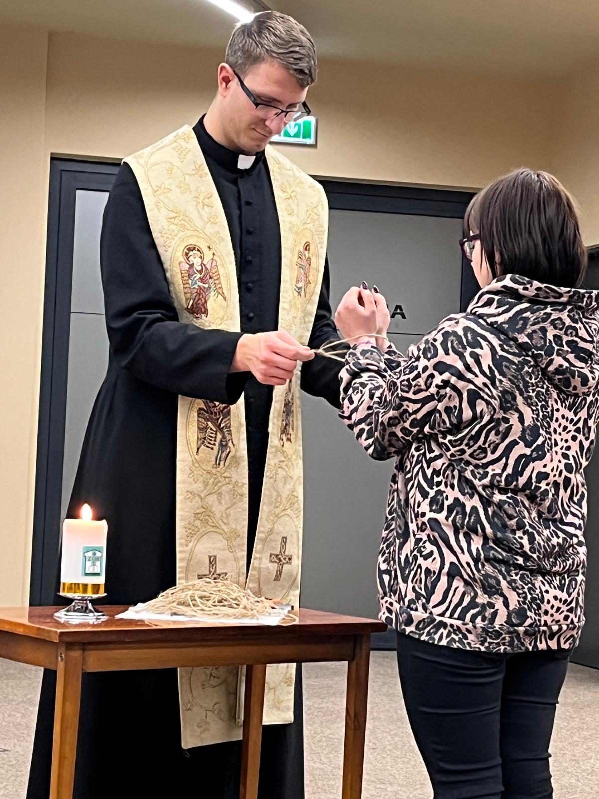 Na koniec, w ramach dynamiki. podchodzili do nas „aniołowie” , którzy prowadzili nas do Księdza symbolizującego Boga, który UWALNIAŁ nas z PĘT GRZECHU. Bardzo wymowne doświadczenie.