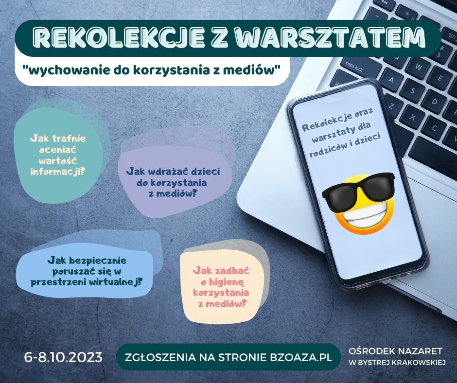 Jako Diakonia Komunikowania Społecznego zapraszamy rodziców lub całe rodziny do udziału w Rekolekcjach z warsztatem, poświęconych zagadnieniom korzystania z mediów.