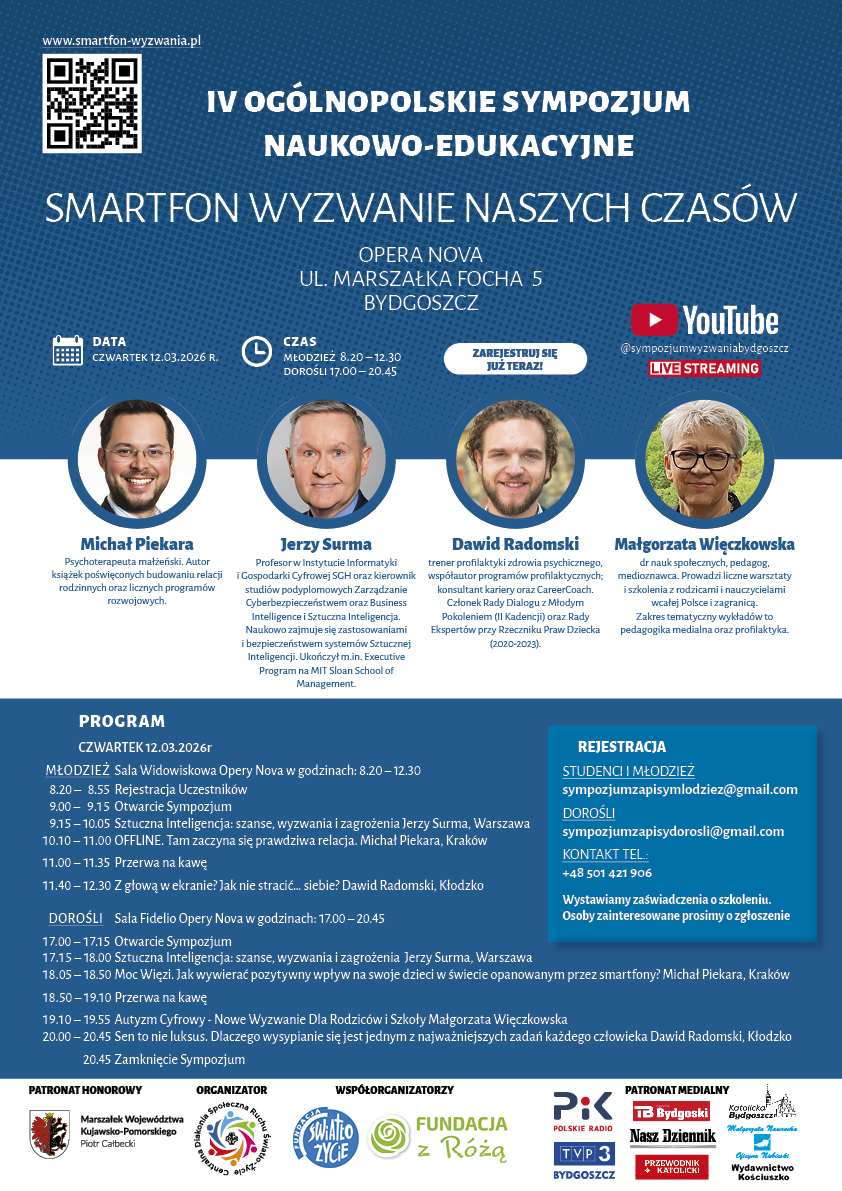 Osoby, które nie mogą przybyć do Opery Nova aby uczestniczyć w Sympozjum, zachęcamy do odbioru online.